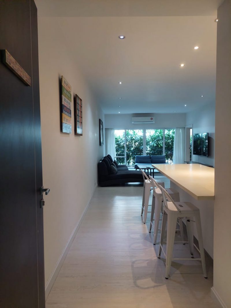 The apartment benefits from LED lighting, air conditioners, and hot water throughout.