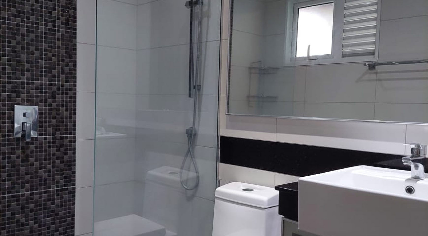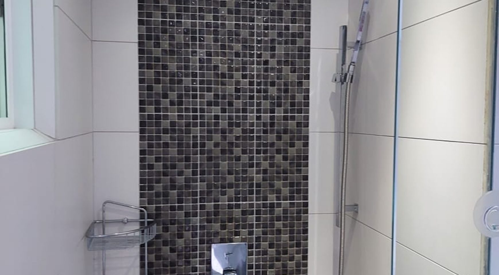 The master bedroom is large, light, and airy owing to glass sliding doors that open up on to the balcony. Full-height built-in wardrobes come complete with TV, telephone, and power points. The en-suite shower room is equipped with modern fittings including a rain shower.