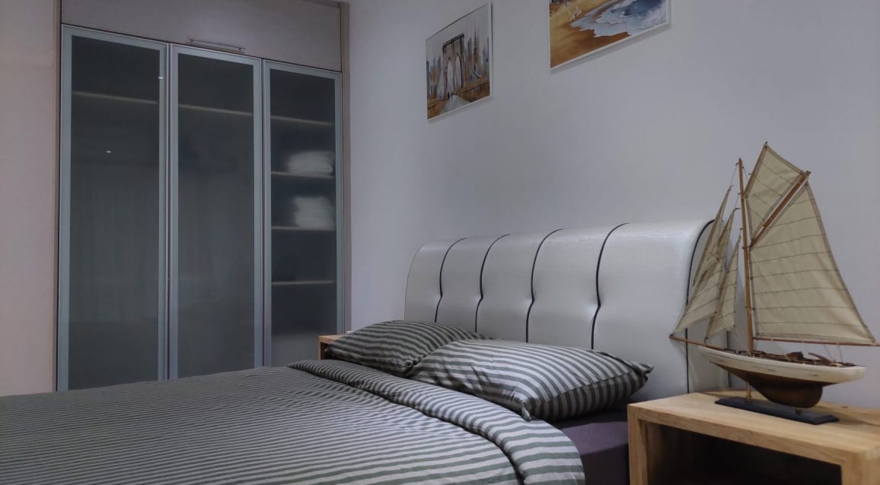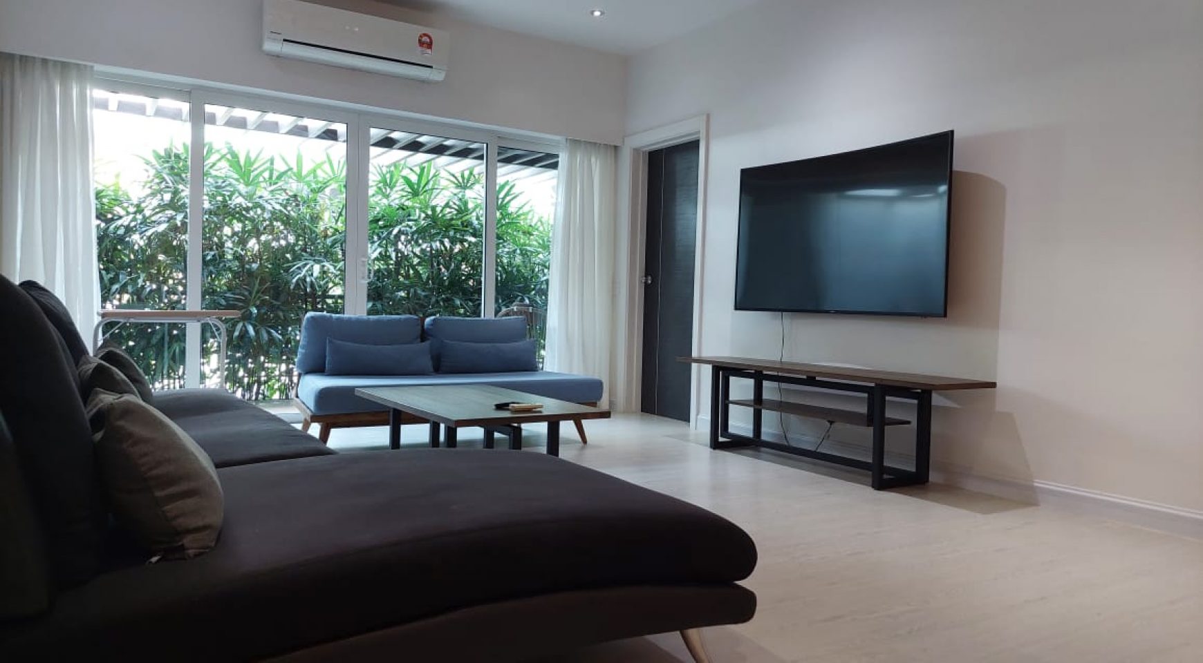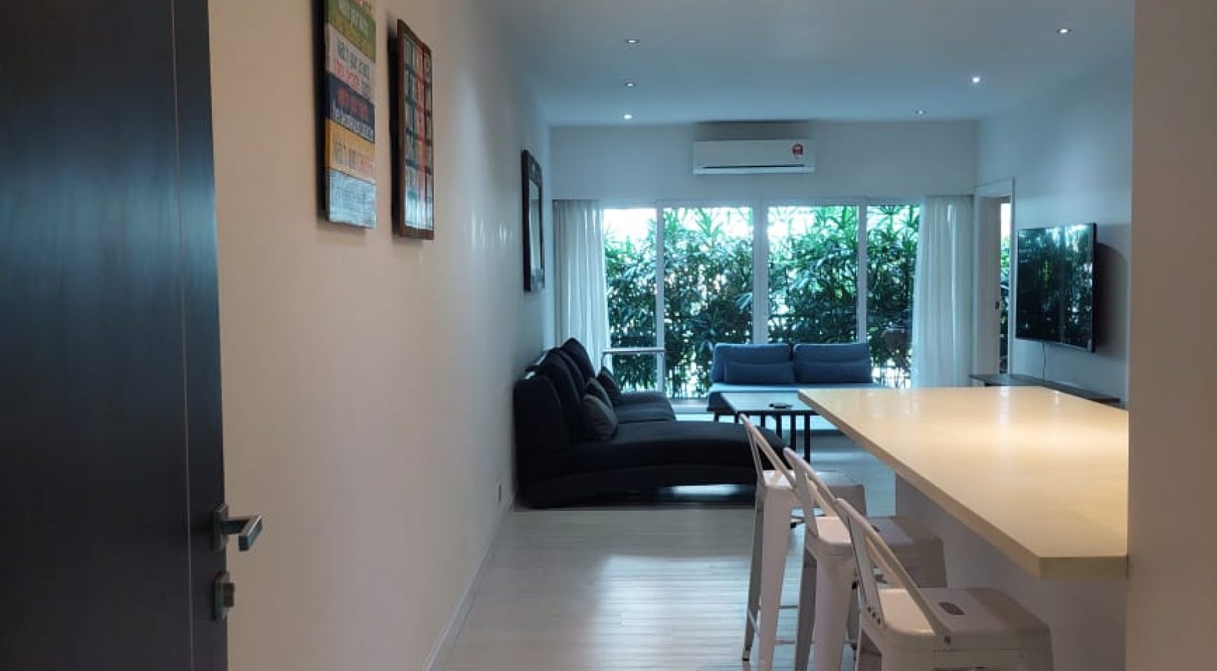 The apartment benefits from LED lighting, air conditioners, and hot water throughout.