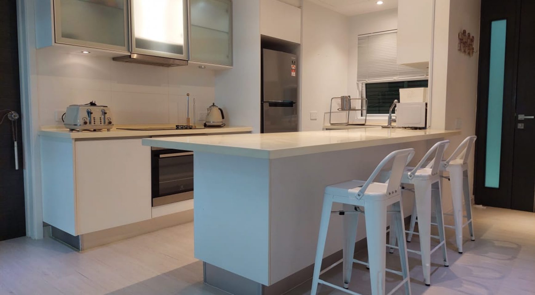 Tastefully furnished with a mix of contemporary and wooden furniture, this apartment is in walk-in condition. The rental price not only includes all fittings, fixtures and furnishings, but also all small electricals and household items.